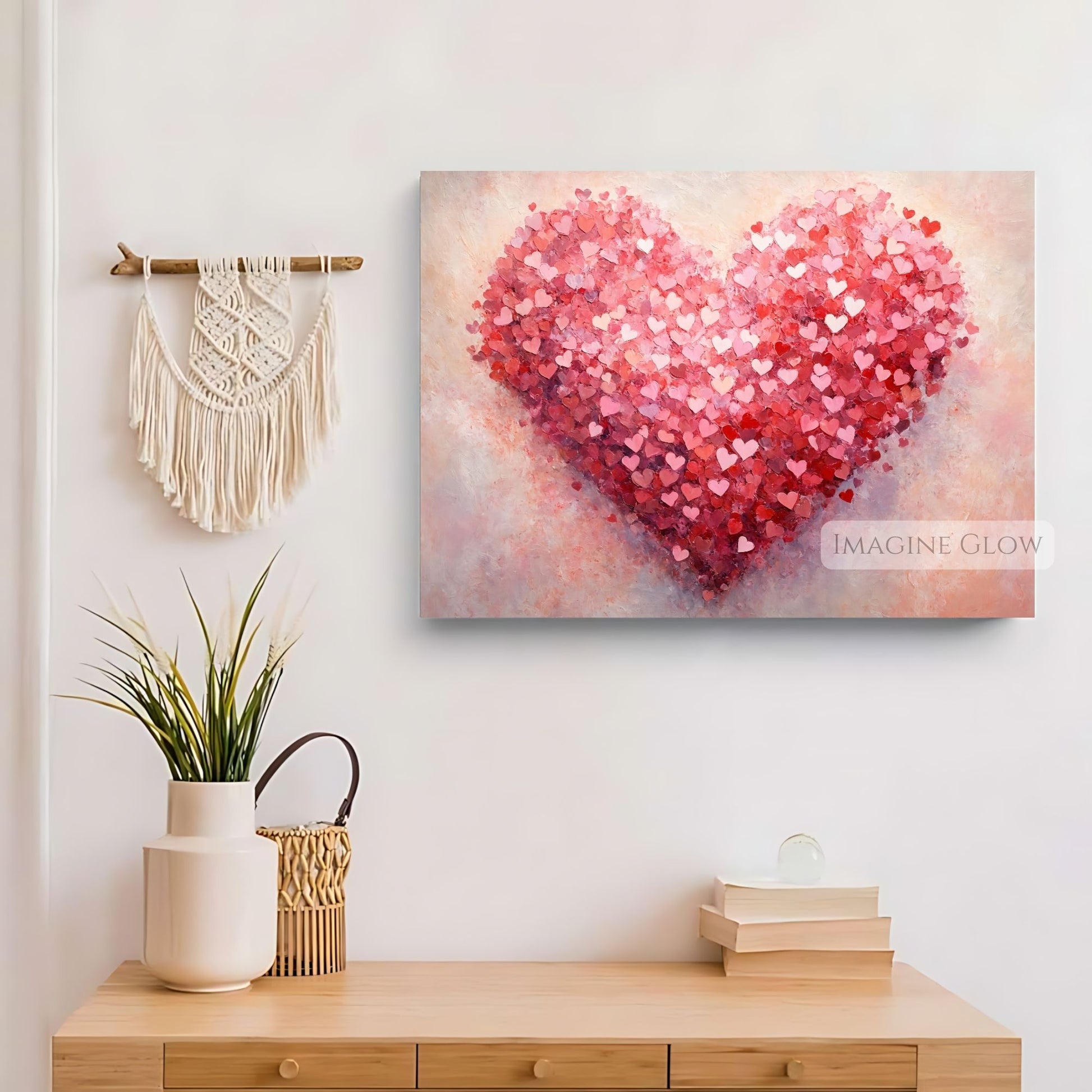 With a beautiful vintage touch, this heart wall art is perfect for Valentine’s Day decor, bringing warmth and love into your space. Whether you're looking to enhance your living room, bedroom, or office, this romantic Valentine’s Day art print is sure to make a lasting impression. Its soft red and pink hues, combined with an antique oil painting style, create a soothing, nostalgic atmosphere.
