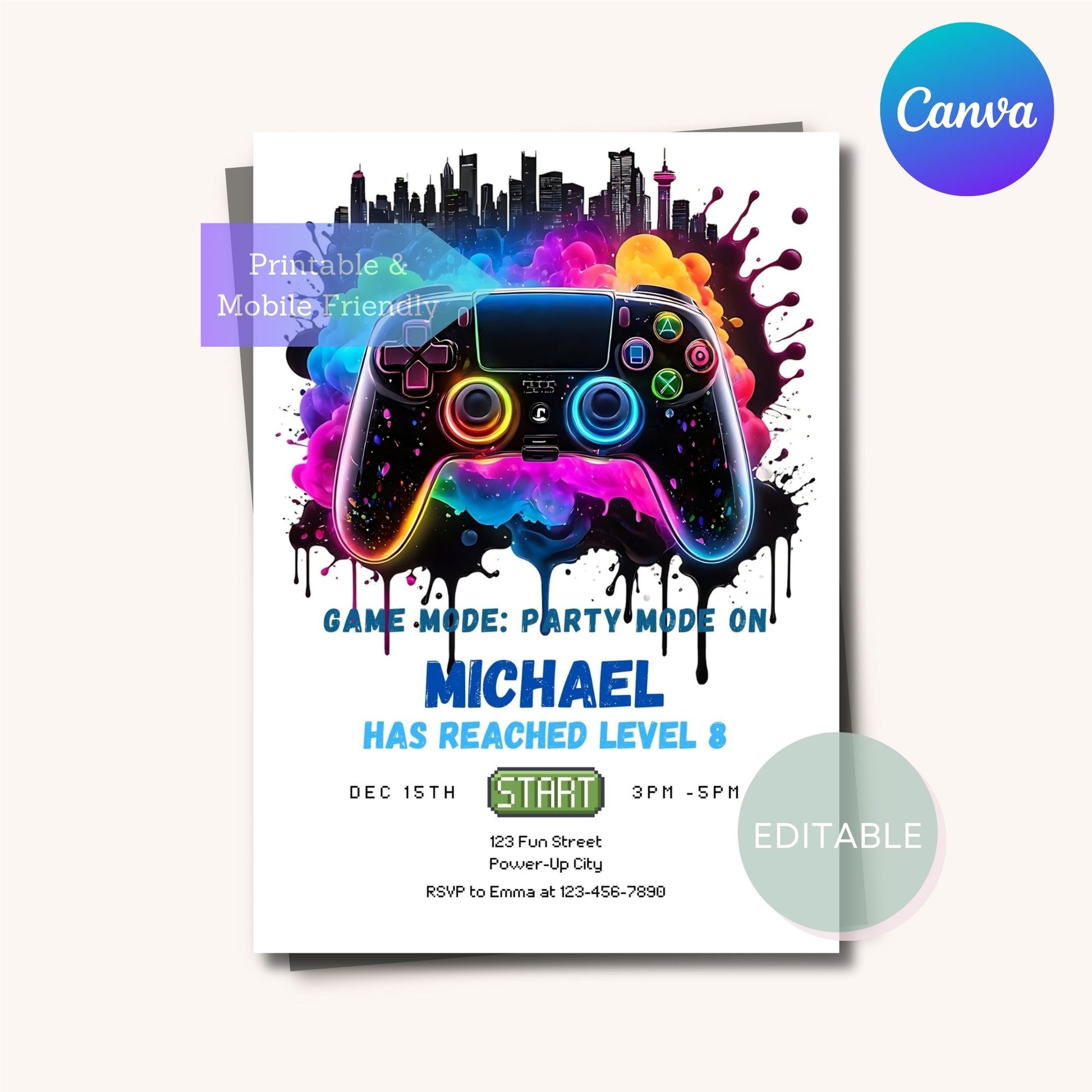 Video Game Party Invitation Template - Editable Gamer Birthday Invite - Arcade Theme - Printable Canva Design