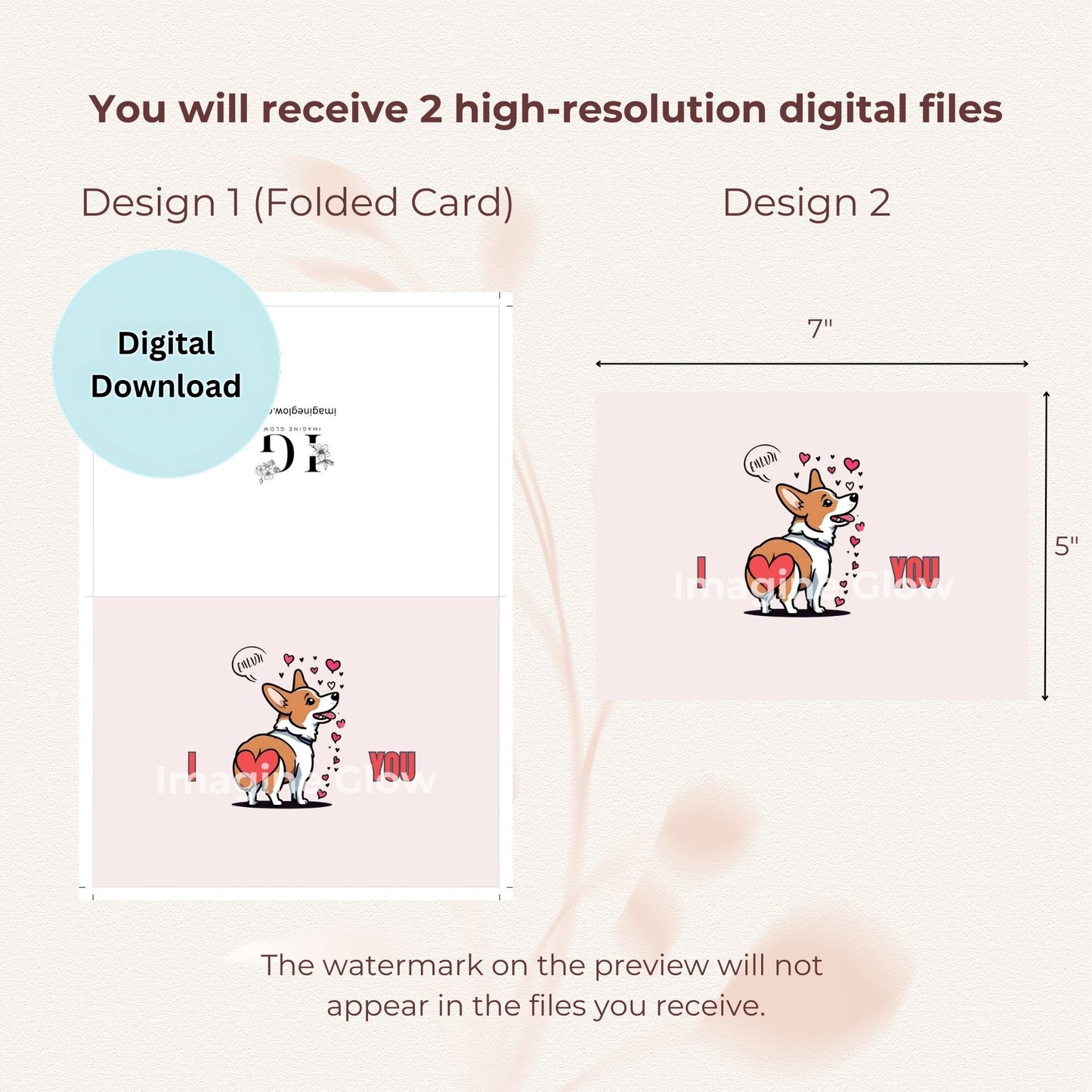 Show your love with this charming Welsh Corgi Card, perfect for Valentine's Day, anniversaries, or just to say "I love you." Featuring an adorable illustration of a Welsh Corgi, this printable greeting card captures the joyful spirit of your affection. Designed for easy downloading and printing, celebrate your special moments with this delightful Corgi-themed card that is sure to bring smiles and warmth to your loved one's heart.