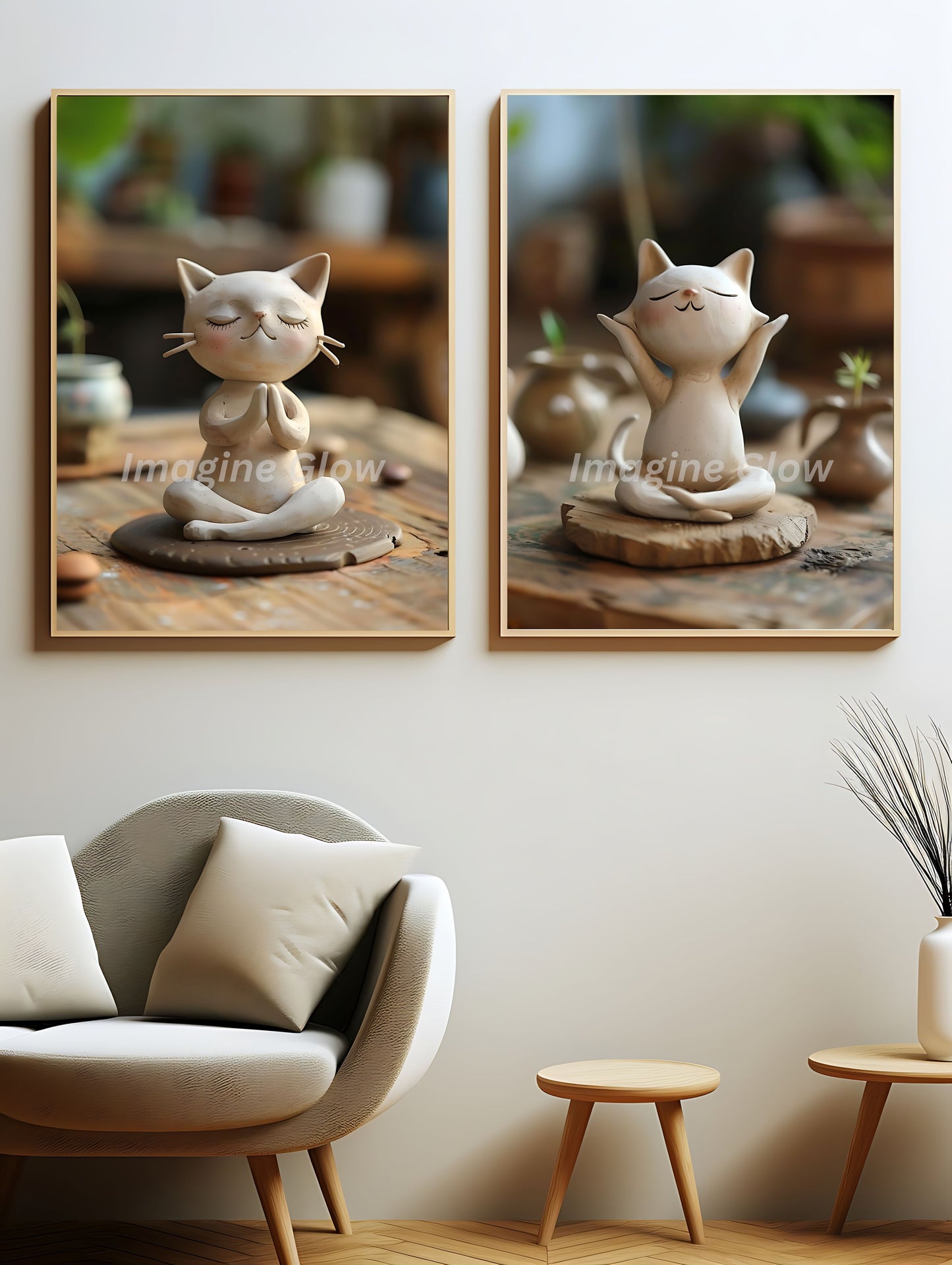 Embrace the playful side of yoga with this "Yoga Cats Art Print," featuring adorable cats in various yoga poses. This fun and whimsical wall art is perfect for cat lovers and yoga enthusiasts alike, adding a touch of humor and charm to any yoga studio, living room, or bedroom. Ideal for anyone looking to add personality and lightheartedness to their decor.