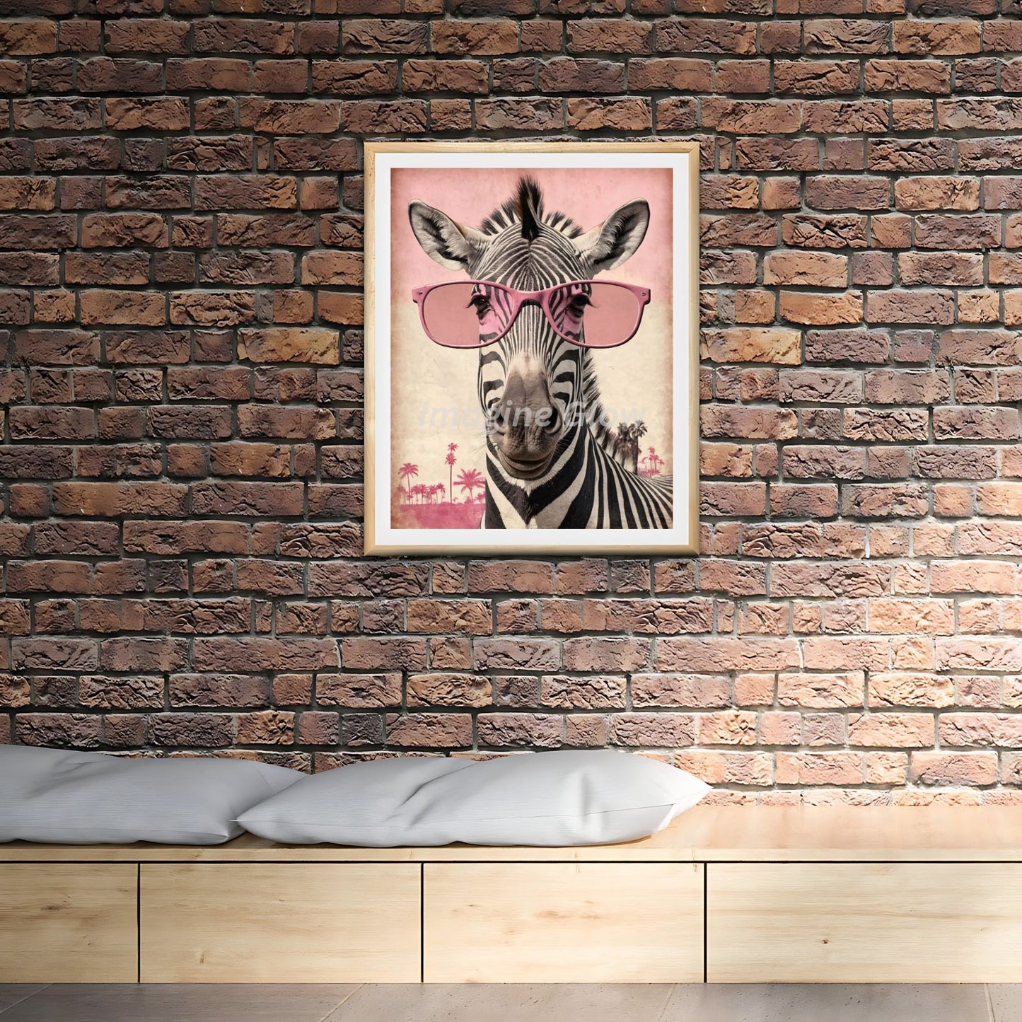 Zebra Wearing Glasses - Printable Retro Travel Poster